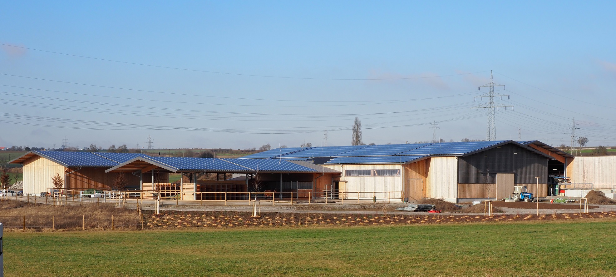Ansicht Süd-Ost (Offenstall / Reithalle / Bergehalle)